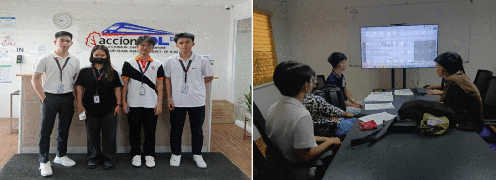 Acciona-DL E&C Joint Venture (ADJV) facilitated a learnership program (through on-the-job training) to bridge the gap between theoretical knowledge and practical skills, enhancing students' readiness for the workforce. The training provided a practical, hands-on learning environment that complements their academic learning, while enhancing professional attitude, improving communication and teamwork skills, and understanding workplace dynamics. Four Civil Engineering students from Holy Cross College, Sta. Ana Pampanga, were assigned to Technical Office, Planning Department and Station team to be exposed in construction-related tasks for a period of 240 training hours each.