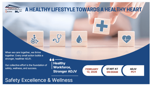 Acciona–DL E&C Joint Venture (ADJV) officially launched the ADJV’s Health & Wellness Campaign on February 13, 2026, a collective effort to reinforce the commitment to healthier lifestyles and a safer workplace. This campaign aims to encourage all members of ADJV to engage in activities that promote physical well-being, mental resilience, and a culture of care across the organization. The event was simultaneously conducted at various sites including Lazatin, San Fernando and Sto. Tomas, which was integrated into the respective general toolbox sessions.